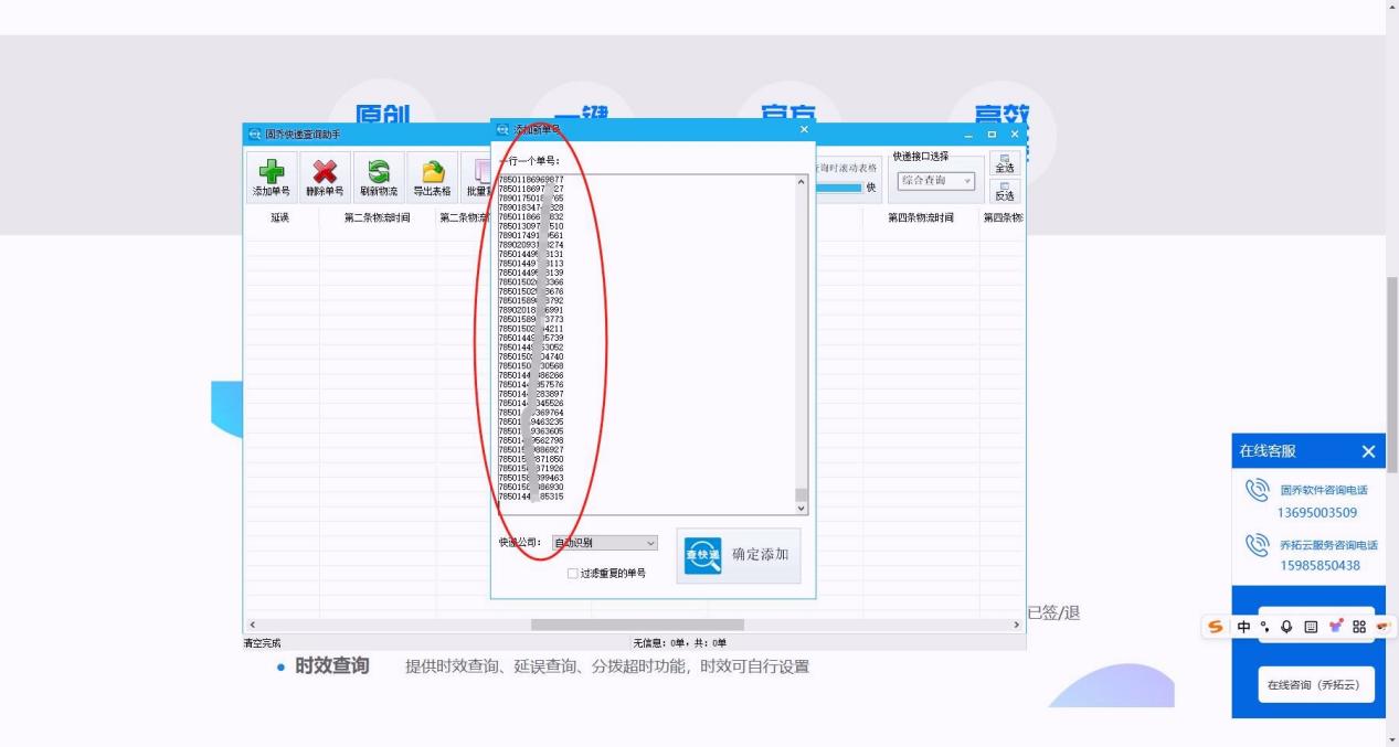 批量导入:支持粘贴、表格导入,无需格式转换,可过滤重复单号,单次最多导入1万单;