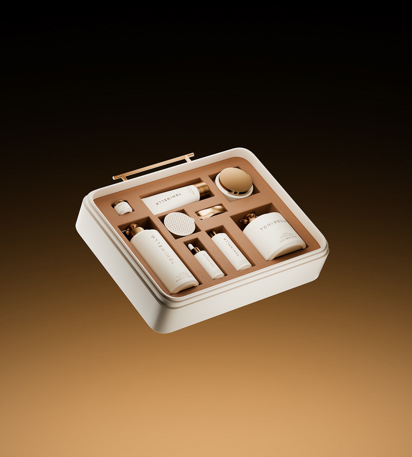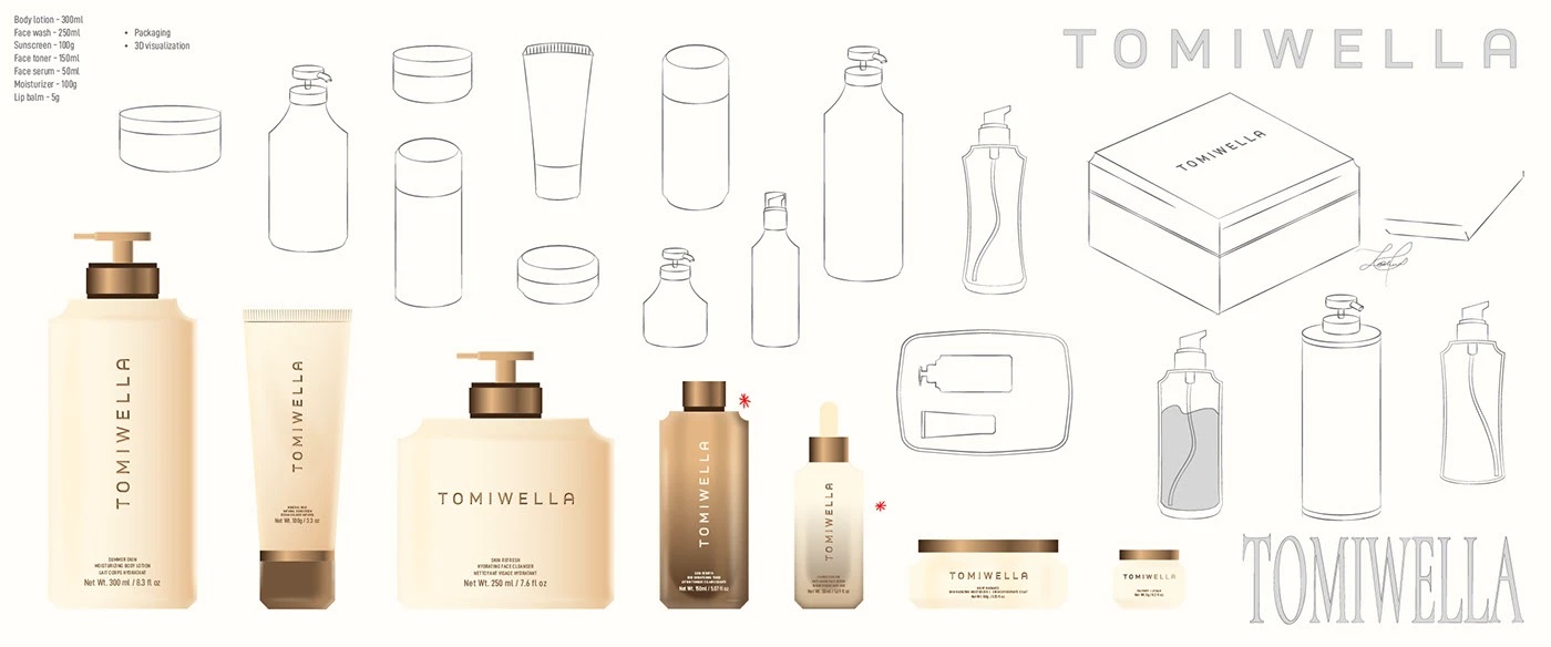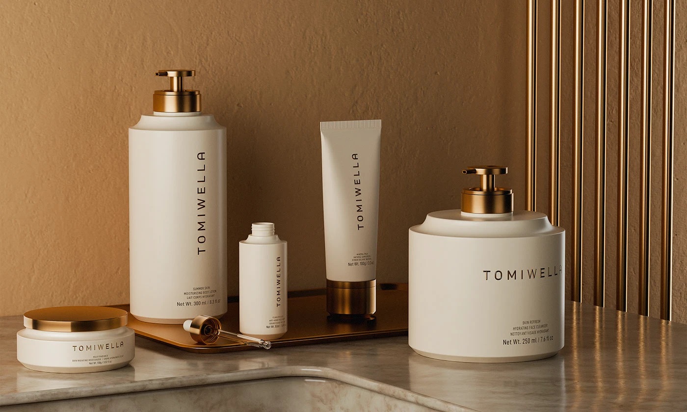 TOMIWELLA 从形态、奢感与刻意的克制出发,为护肤套装打造了契合品牌理念的一体化包装设计体系,以此探索现代护肤的包装美学,将低调奢华的品牌内核融入每一处设计细节。套装内所有产品包装皆为整体的一部分,并非独立设计,以清晰的视觉轮廓、规整的几何结构为基底,让整体包装设计在舒适与精研之间,酝酿出独有的静谧张力。在材质选择上,品牌摒弃繁复堆砌,秉持通透清晰的核心方向,以材质本身的质感彰显高端格调;同时巧用控光设计的手法,通过光影的层次变化,精准勾勒出包装的立体深度与质感分量,用极致的简约设计,将精准工艺与高端奢感相融,让包装设计成为品牌护肤美学的具象表达。