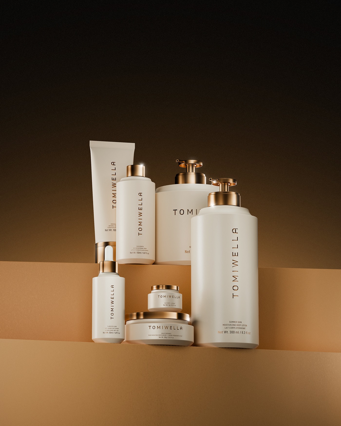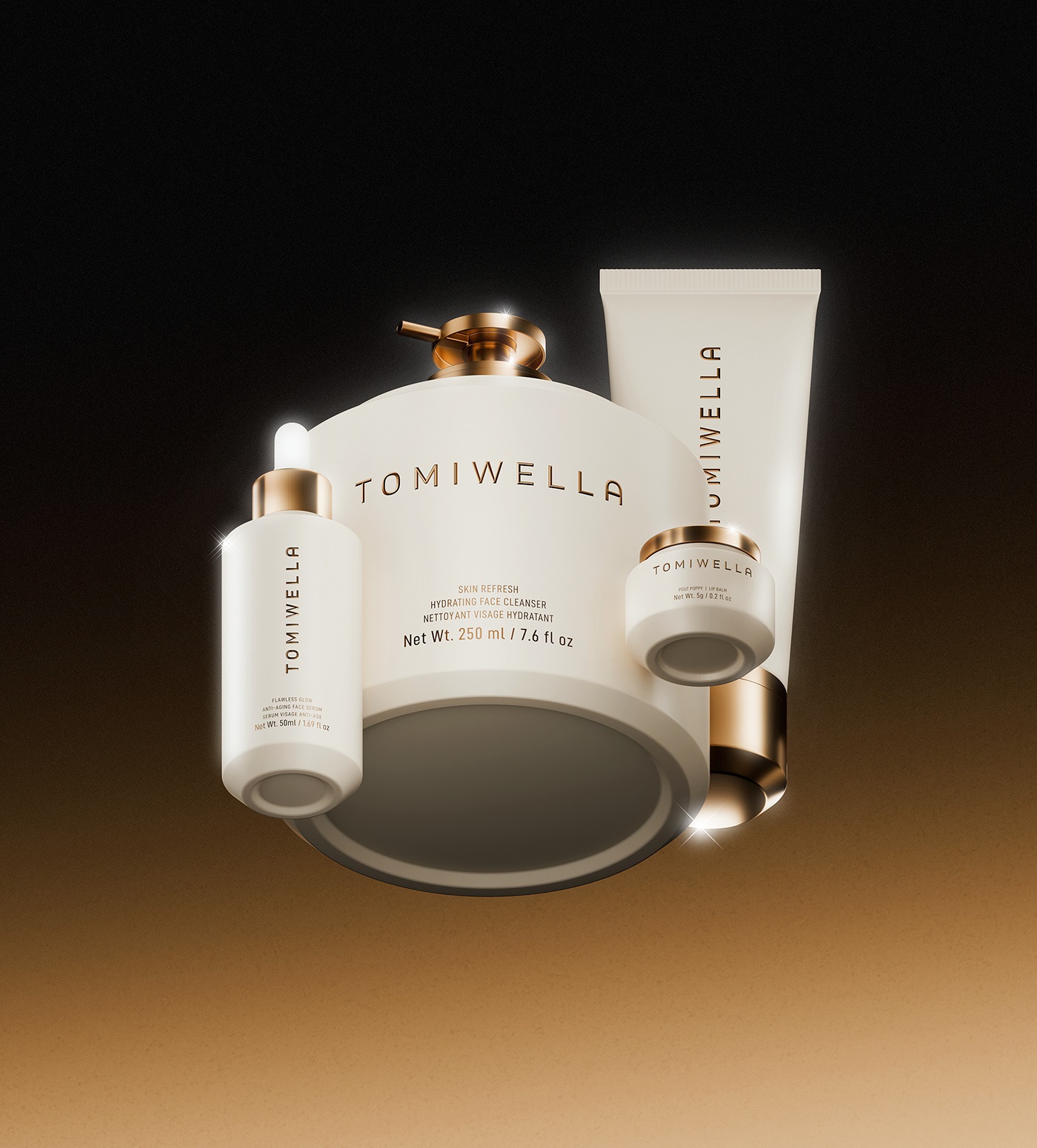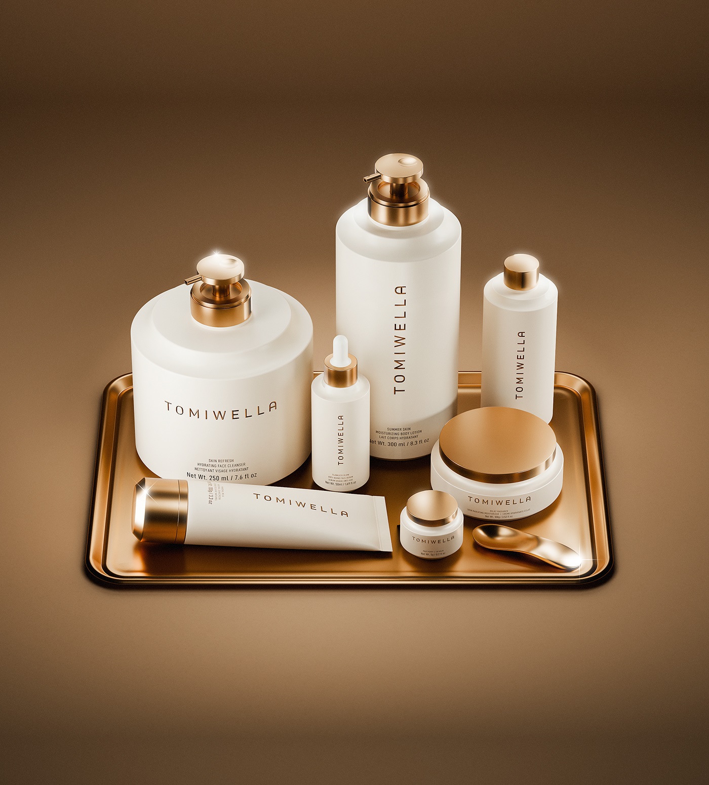 TOMIWELLA 从形态、奢感与刻意的克制出发,为护肤套装打造了契合品牌理念的一体化包装设计体系,以此探索现代护肤的包装美学,将低调奢华的品牌内核融入每一处设计细节。套装内所有产品包装皆为整体的一部分,并非独立设计,以清晰的视觉轮廓、规整的几何结构为基底,让整体包装设计在舒适与精研之间,酝酿出独有的静谧张力。在材质选择上,品牌摒弃繁复堆砌,秉持通透清晰的核心方向,以材质本身的质感彰显高端格调;同时巧用控光设计的手法,通过光影的层次变化,精准勾勒出包装的立体深度与质感分量,用极致的简约设计,将精准工艺与高端奢感相融,让包装设计成为品牌护肤美学的具象表达。