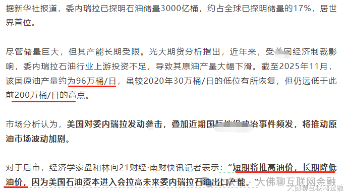 以委内瑞拉原油的储量,一旦放开采,那原油产量会井喷,到时油价估计还有向下的趋势。