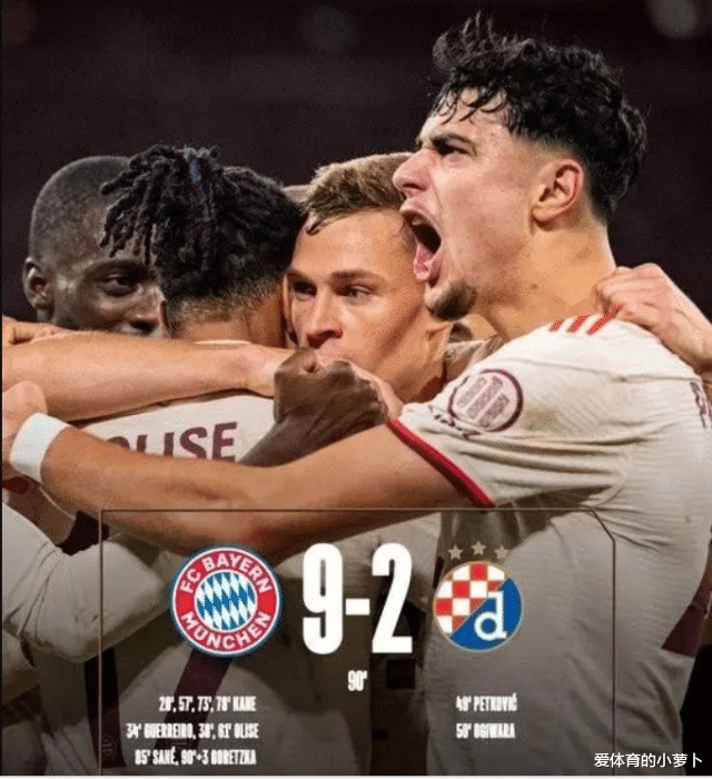 比赛接近尾声时,拜仁慕尼黑依然没有收手的意思。穆勒用脚后跟巧妙助攻萨内远射得分,基米希则在传中助攻格雷茨卡头球破门。最终,拜仁慕尼黑以9-2的悬殊比分大胜萨格勒布迪纳摩。