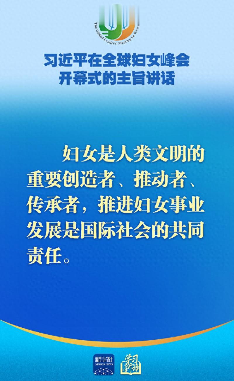 10月13日上午,国家主席习近平在北京国家会议中心出席全球妇女峰会开幕式并发表题为《弘扬北京世妇会精神 加速妇女全面发展新进程》的主旨讲话。讲话金句,一起学习!