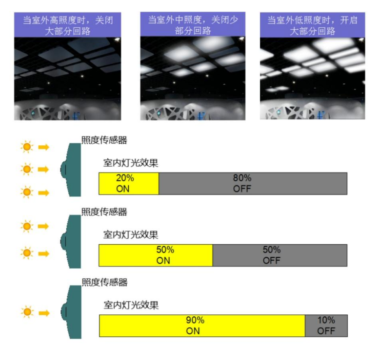 在万级及千级洁净生产区,采用恒照度自动控制。
