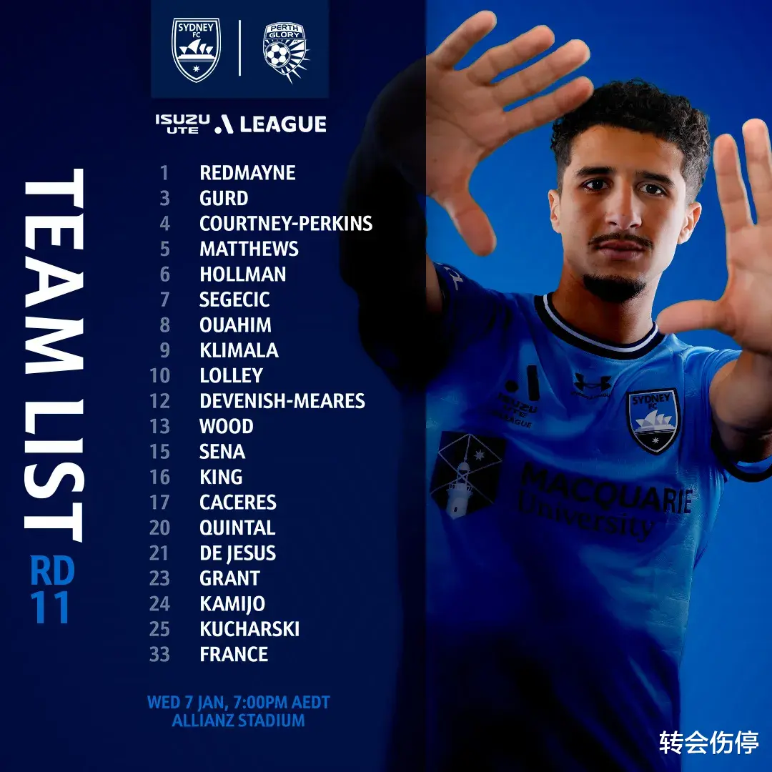 1月8日16:00,澳超联赛第十一轮,排名第八的悉尼FC主场迎战倒数第二的珀斯光荣。