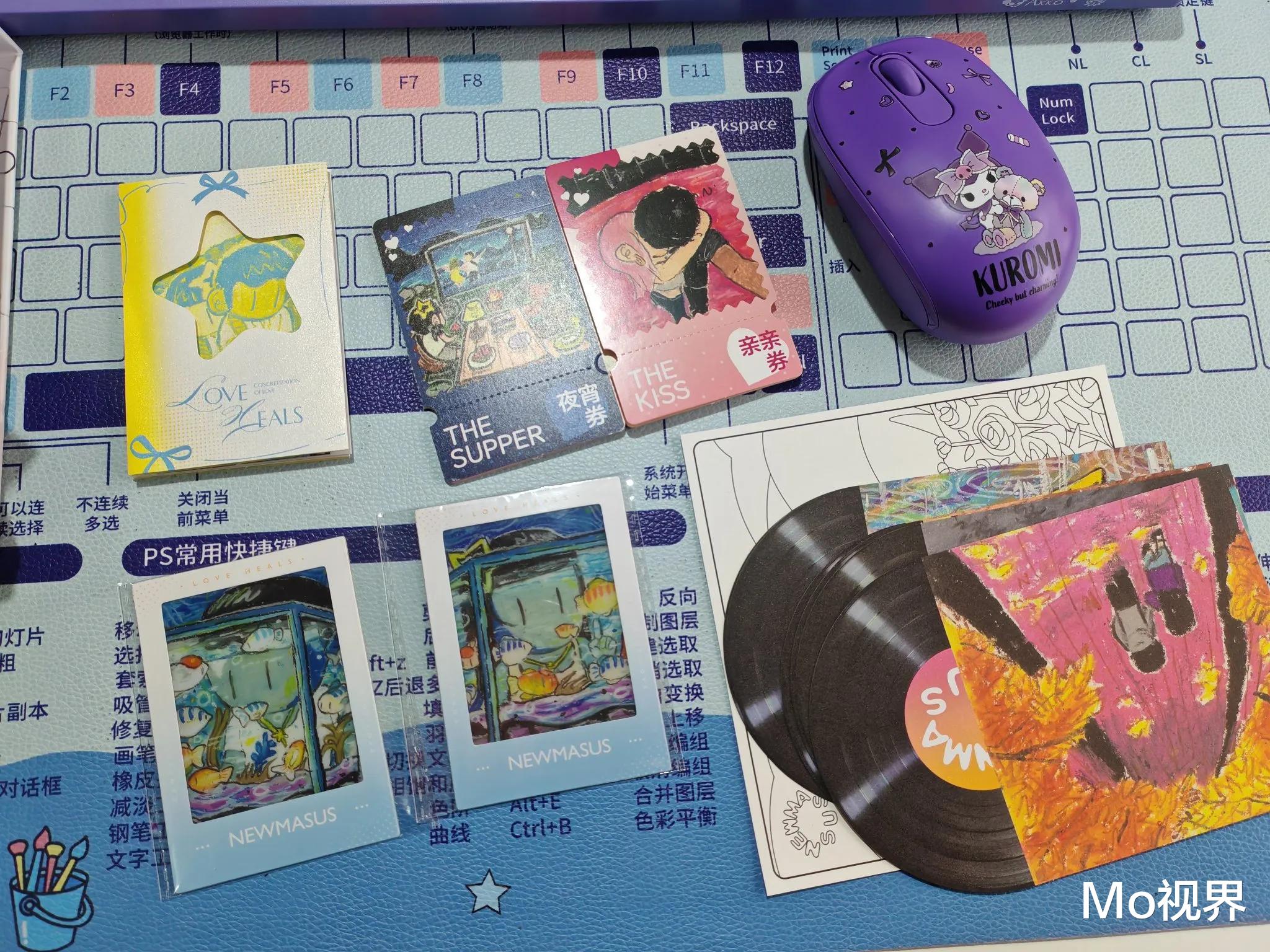 《Newmasus:爱的具象化》这个画集让我惊喜的地方在于,它还有很多小巧思在画集里:比如可以实现自己愿望的兑换券,当然了这个在居家时候使用效果更佳;比如可爱的唱片卡片,可以让自己在温暖的午后假装在听美好的音乐……