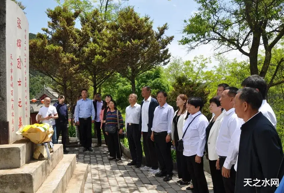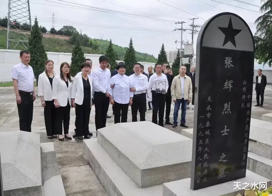 2023年7月5日,孟夏时节,草木葱茏。湖南省平江县政协副主席潘如意、“红色平江”五年计划指挥部指挥长张满兰,以及县退役军人事务局、文旅广体局、融媒体中心等相关人员,与烈士家属张要林、张卫林一同来到天水市秦州区娘娘坝。他们沿着蜿蜒山路而上,步入静谧肃穆、松柏滴翠的牡丹山烈士陵园,参观革命烈士纪念馆,在张辉烈士墓碑前虔诚祭拜。原秦州区政协主席霍秀清虽近年身体抱恙、行路不便,却坚持不让搀扶,亲自上山讲述张辉烈士的战斗事迹和守墓人李逢春的感人故事。众人共同追忆张辉那段峥嵘岁月。