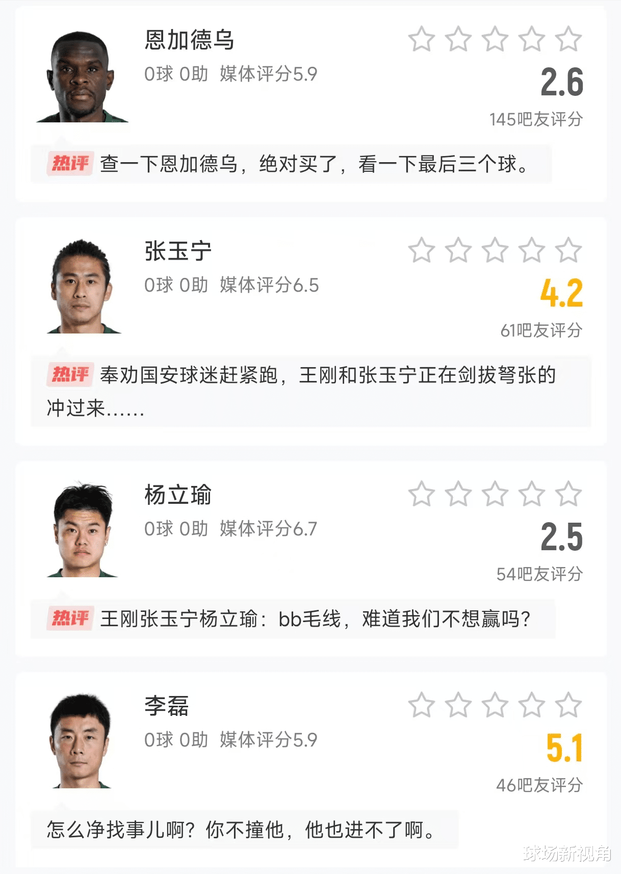 再就是李磊,他在本场比赛送点,导致比赛走向改变的同时,李磊共3次被对方球员过掉,而这一数据也是全场最多,而在赛后,李磊也是遭到不少球迷的批评,认为他状态下滑的严重,现在在场上仅仅是态度不错。