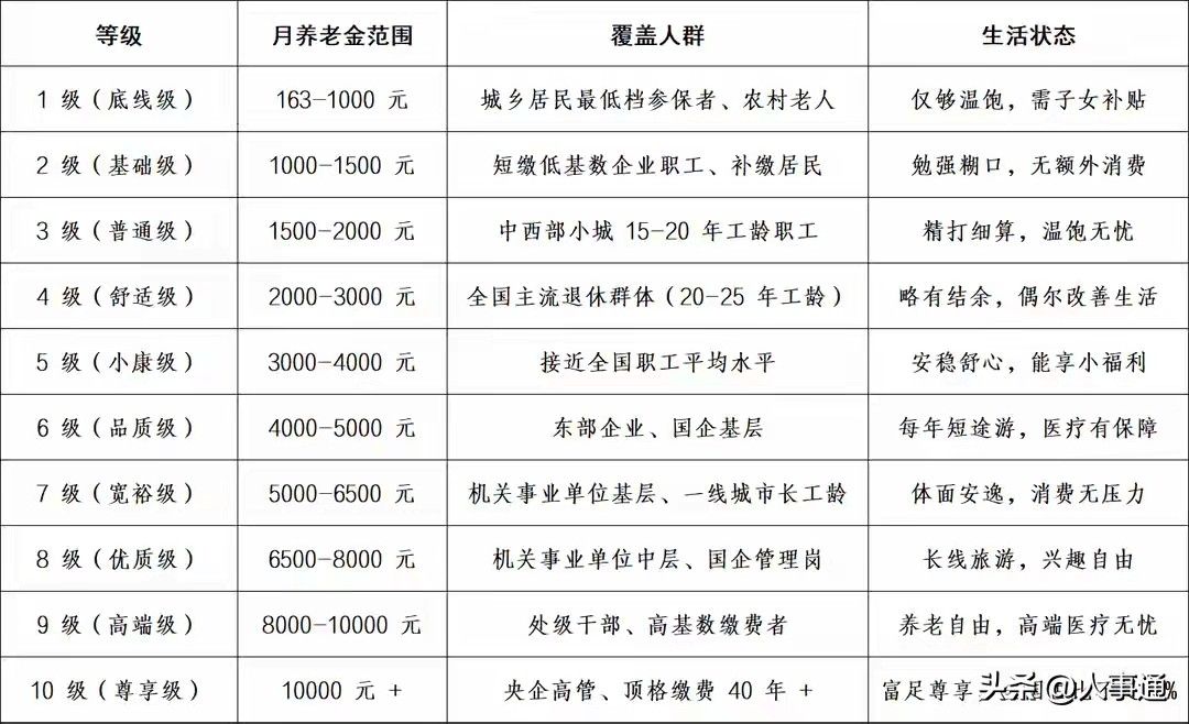 写在最后养老金十级表是民间参考标准,核心是 “保基本、多缴多得”。1-3 级有城乡居民医保、高龄补贴兜底;4-6 级能满足体面生活;7 级以上可追求品质养老。