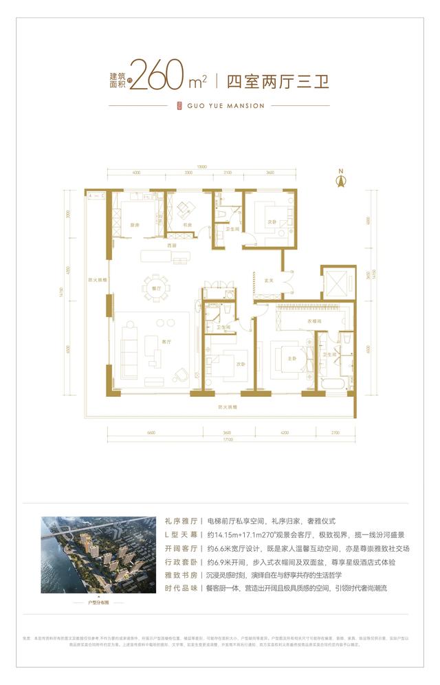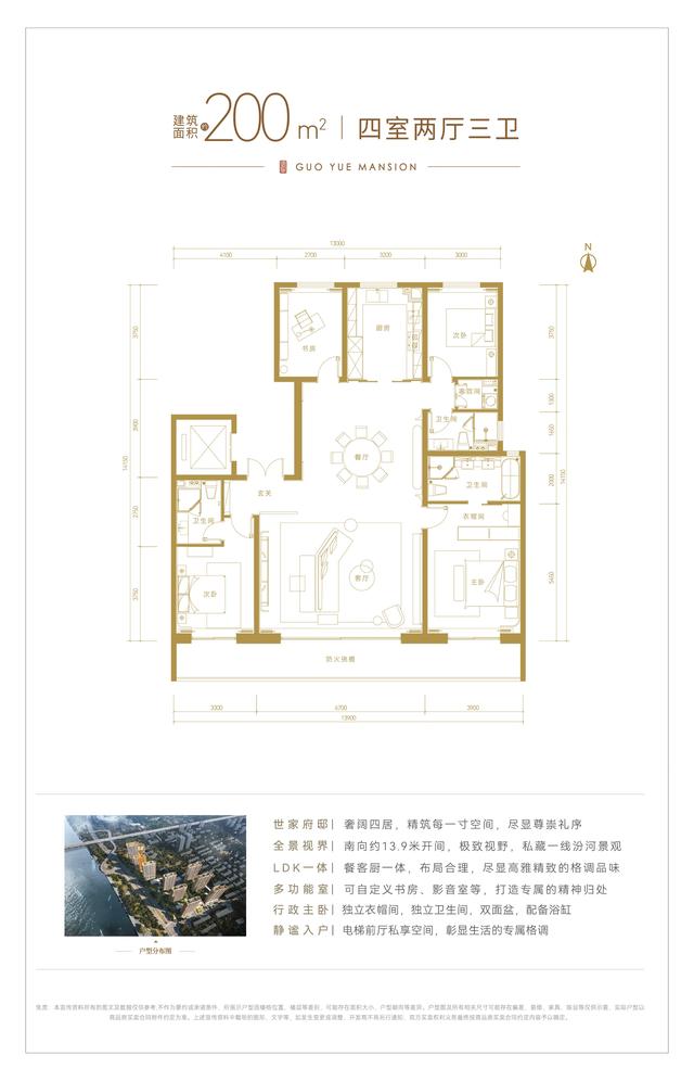 170平米层高3.1米,200-260-305平米层高3.3米,260平米以上明显段位很高,260平米L型阳台河景,305平米270度河景更具备稀缺属性!