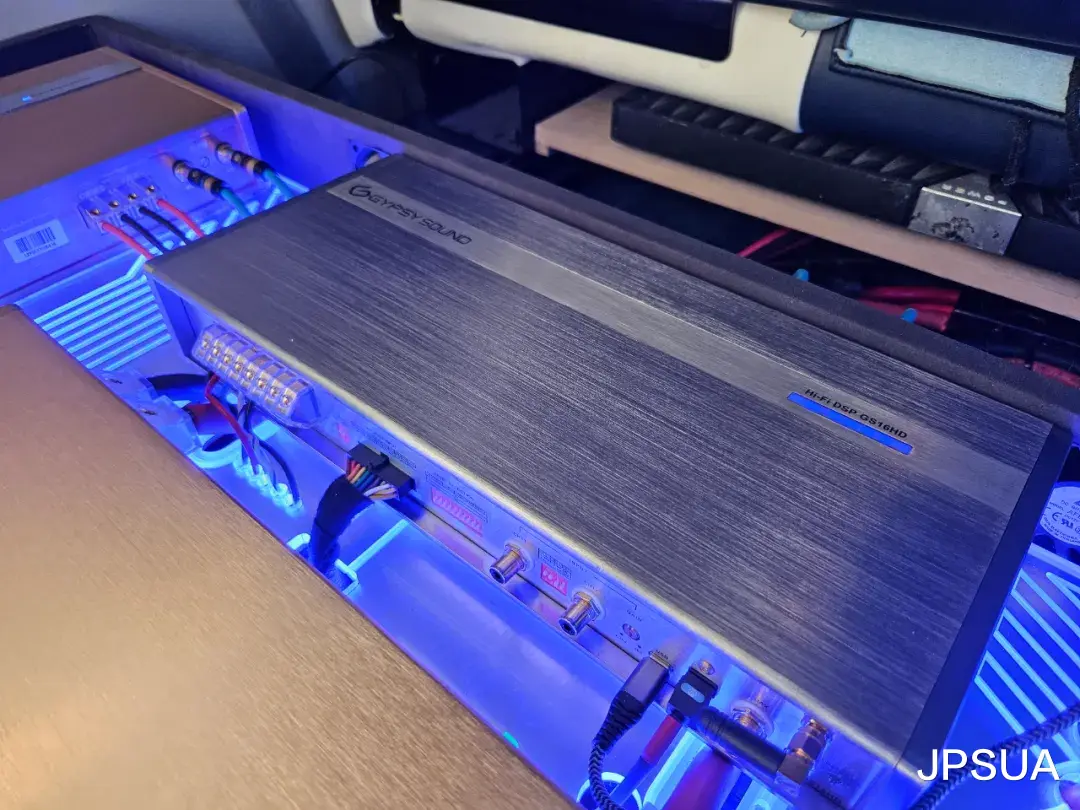 16 路纯 DSP 处理器 GS16HD 堪称系统的 “智能大脑”。它不仅能过滤原车电子干扰带来的杂音,更可通过 OTG 功能直连高清音乐平台,支持全音频格式传输。针对 GL8 宽敞的座舱空间,技师通过其独立声道延时调校,让声场精准聚焦于每一个座位,实现 “全车皇帝位” 的听觉体验。