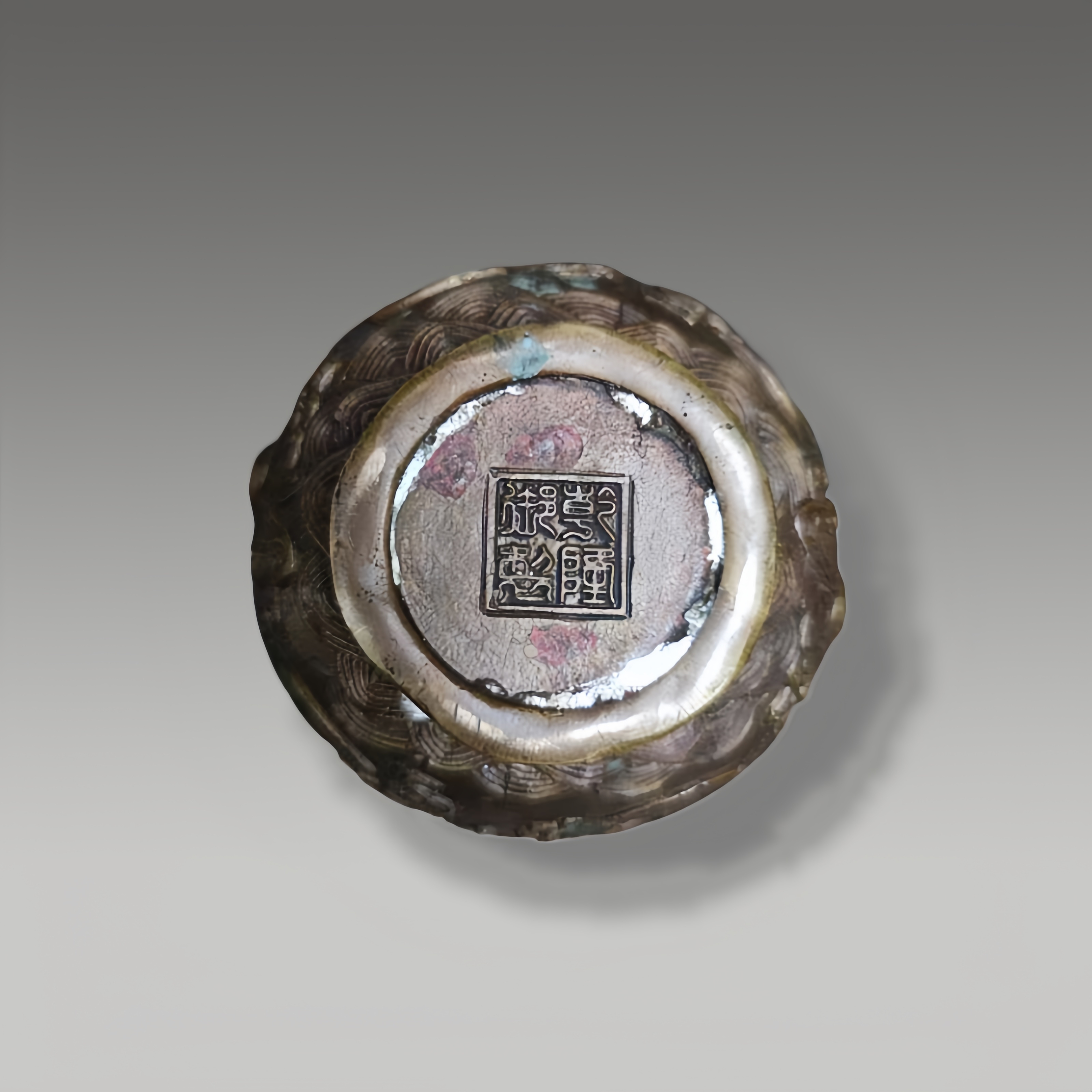 银质锭形饱满,呈圆饼状,表面覆古朴包浆,斑驳自然。底部錾刻清晰十字格款识,字迹规整