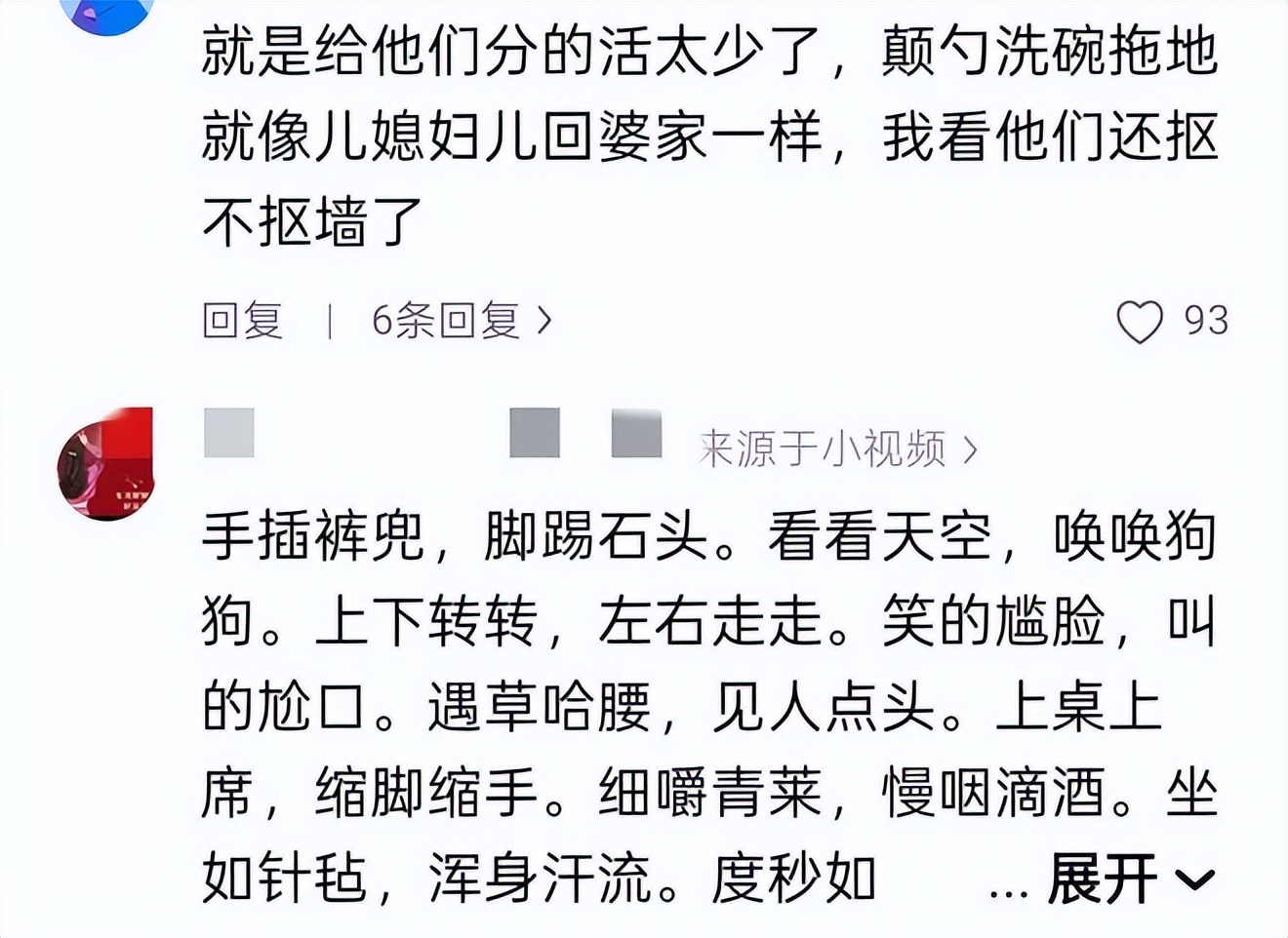看似声泪俱下,实则演技拉满。岳父母心里门儿清,一边假装 “主持公道”,训斥女儿 “别欺负女婿”,一边偷偷给女婿夹菜、塞红包。