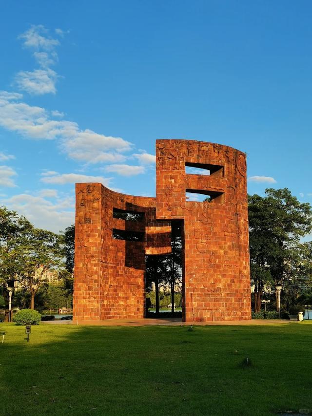 一场暴雨,让我撞见了佛山的“文艺复兴”站在亚洲艺术公园的入口,暴雨倾盆而下,我却舍不得挪动半步。眼前的“亚洲艺术之门”在雨幕中泛着赤铜色的微光,2839块陶板像一本摊开的史诗,每一片都在诉说千年前苏美尔人的契形文字、古巴比伦的汉谟拉比法典,还有岭南瓦脊上嬉笑怒骂的“公仔”。