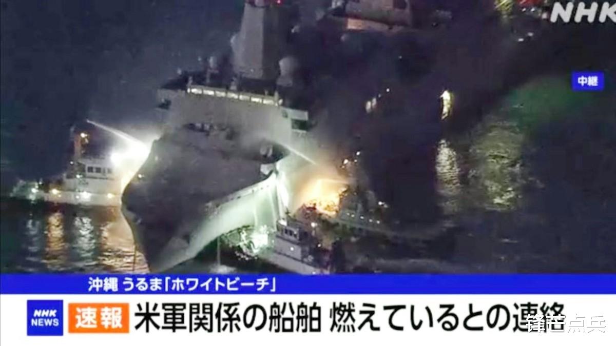 随后日本方面的救援船在"新奥尔良"号船坞运输舰的舰艏两侧,一左一右对这艘发生火灾的两栖舰猛喷海水,虽然火势最终被扑灭,但从日本海保接到求援电话开始,"新奥尔良"号燃烧了至少6个小时,有消息称"新奥尔良"号在上午11点的时候就已经出现了火灾,美军自己折腾了6个小时发现控制不住火势后才向日本海保求援,这样算起来"新奥尔良"号至少燃烧了12个小时。目前来看这场火灾虽然没有彻底烧毁"新奥尔良"号,但这艘大舰的情况不容乐观。