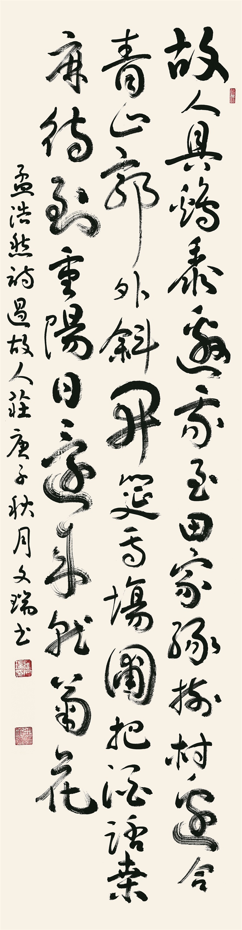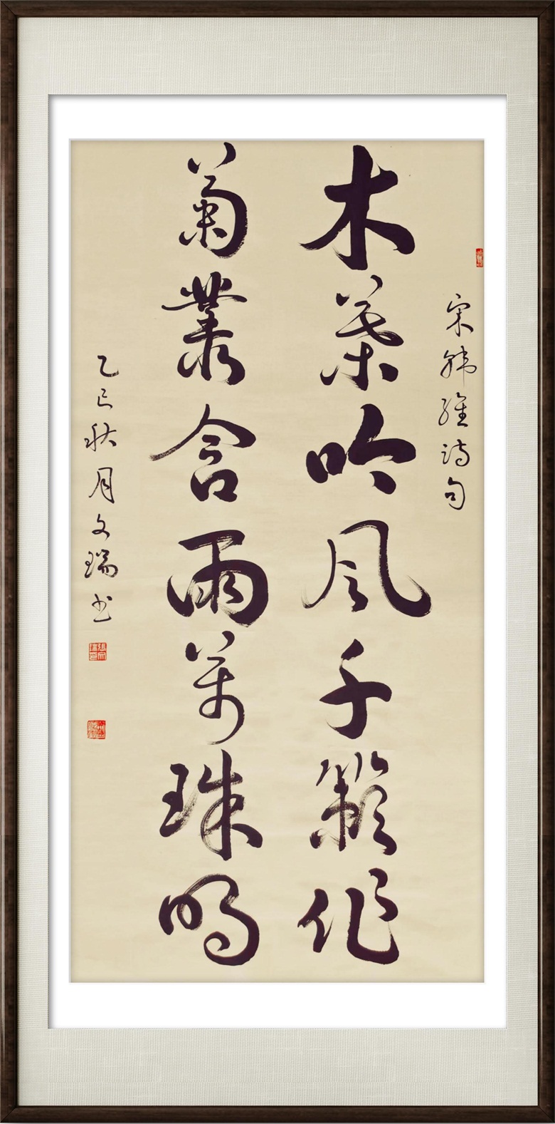 张文瑞书法作品《木叶吟风千籁作 菊丛含雨万珠明》