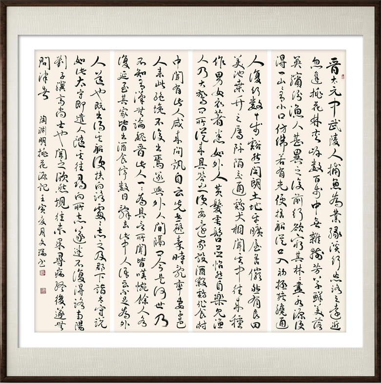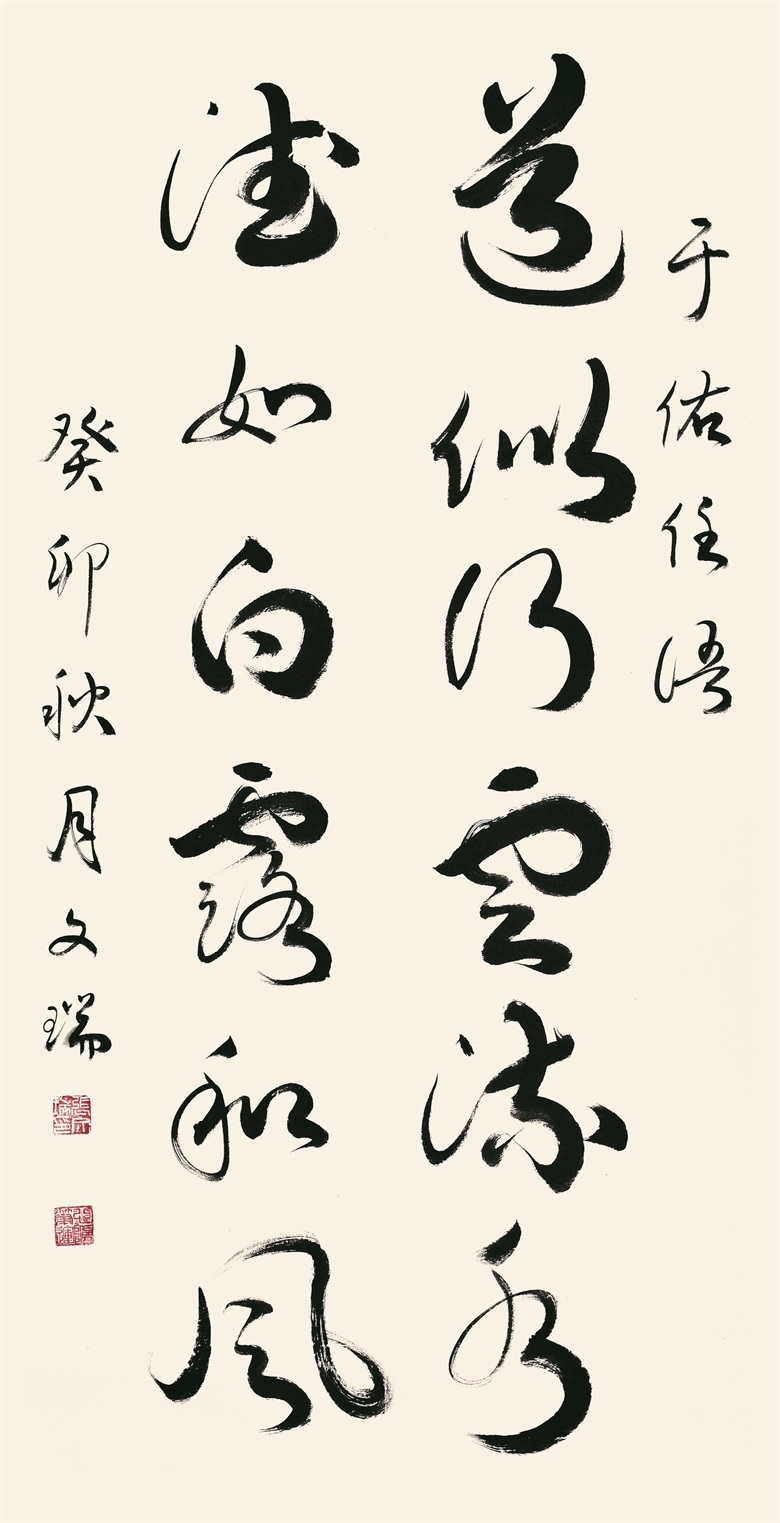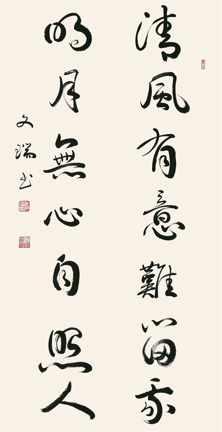 从张文瑞的行书、行草书之中,可以看到张文瑞有着深厚的书写功力,那是百炼成钢的肌肉记忆,也是对多家字体、多种风貌积学厚养之后的融会贯通,主要表现于章法、字法、笔法等“书法之法”而升华为“书法之艺”。