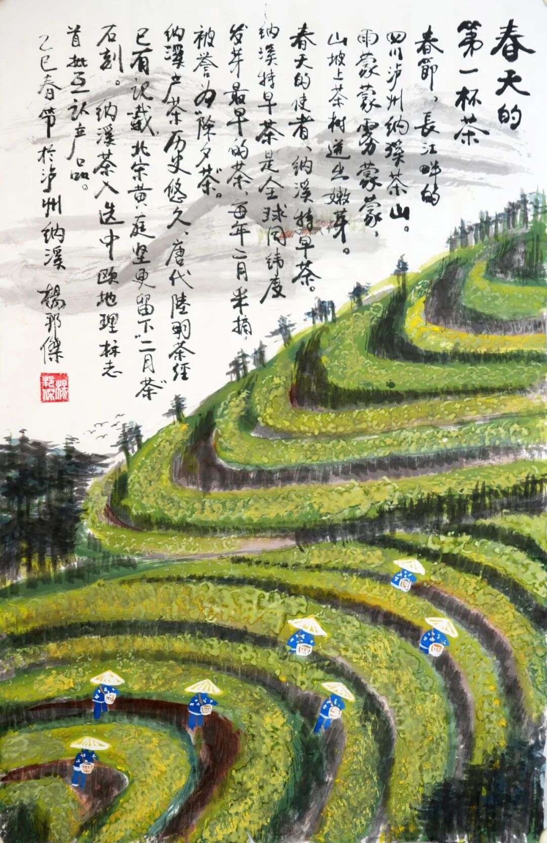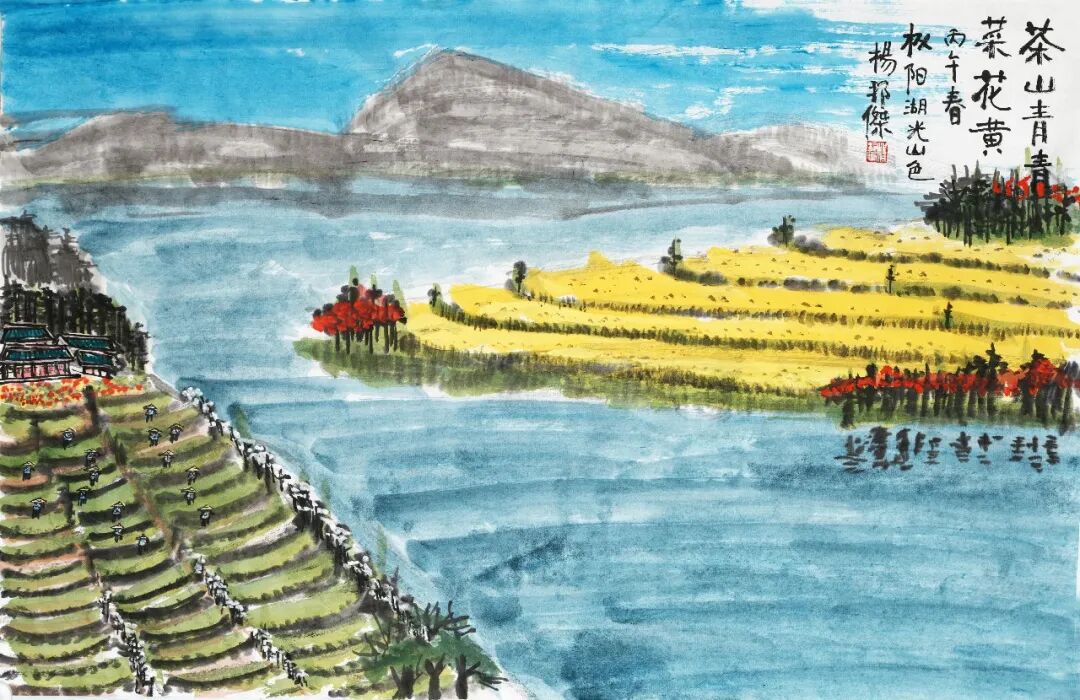 春风,阳光,江南江北好春光。茶山青青菜花黄,春风春雨,河山苍茫。为农场与茶山写字: