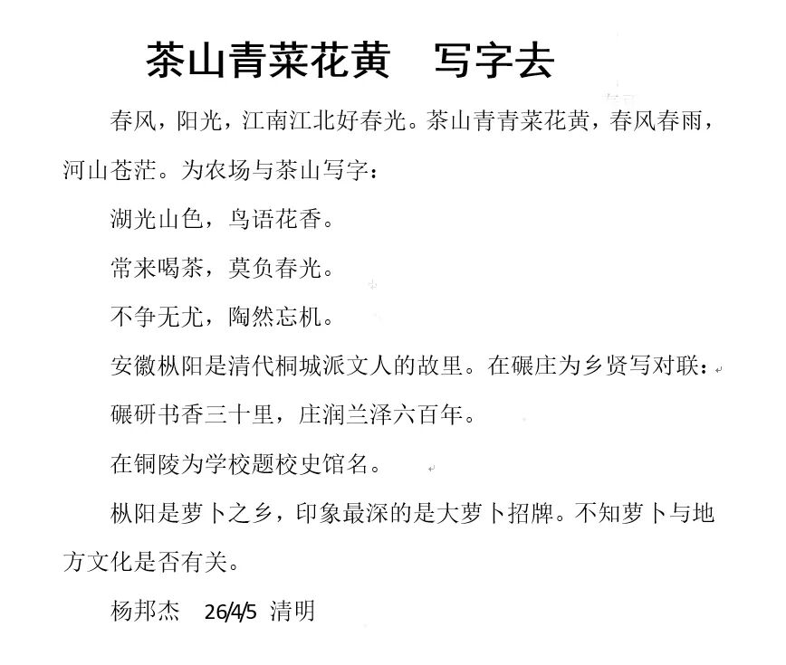 茶山青菜花黄 写字去