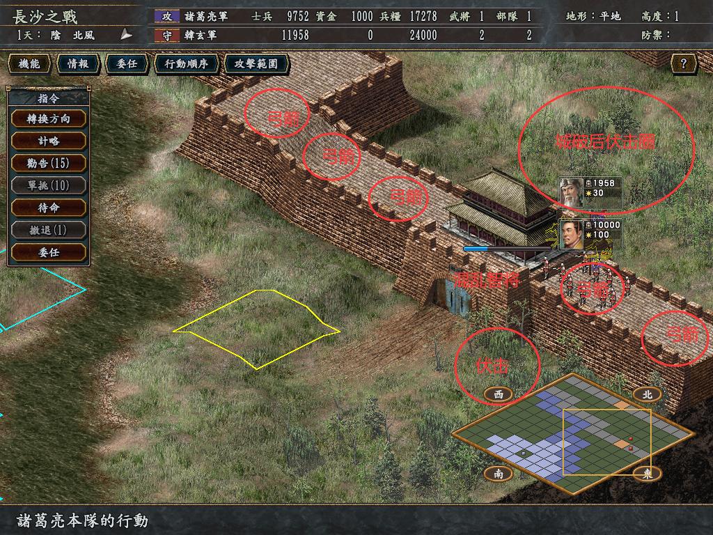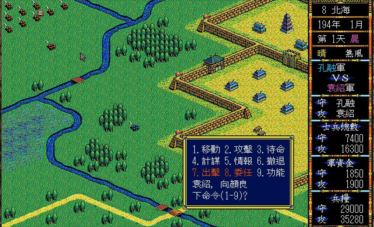 后来发现一张这样的图,早期《三国志3》的攻城战界面,才知道这种外城攻城战模式原来早在1992年就开始了。