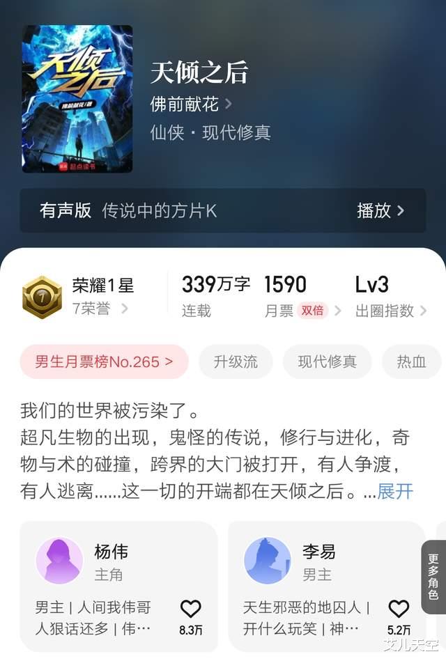 这本天倾之后跟神秘复苏也有关联,只是无论是成绩还是口碑都差得比较多。