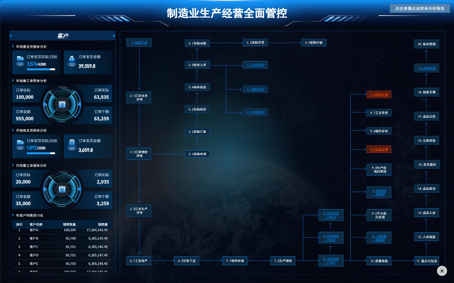 老规矩,开始前先给大家分享一份整理好的制造业生产经营全面管控看板,适用于制造、营销、库存、生产、设备管理、能耗等企业运营场景,能够帮助你实时掌握企业的运营状态。