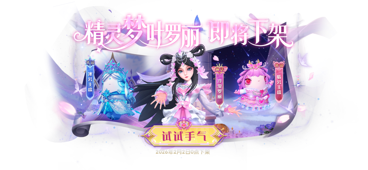 2026年2月2日0点精灵梦叶罗丽夺宝正式下架,传说皮肤冰公主鲨、传说皮肤情公主鲨、神话皮肤冷漠罗丽,首抽仅需2元,抓紧这仅有的机会!