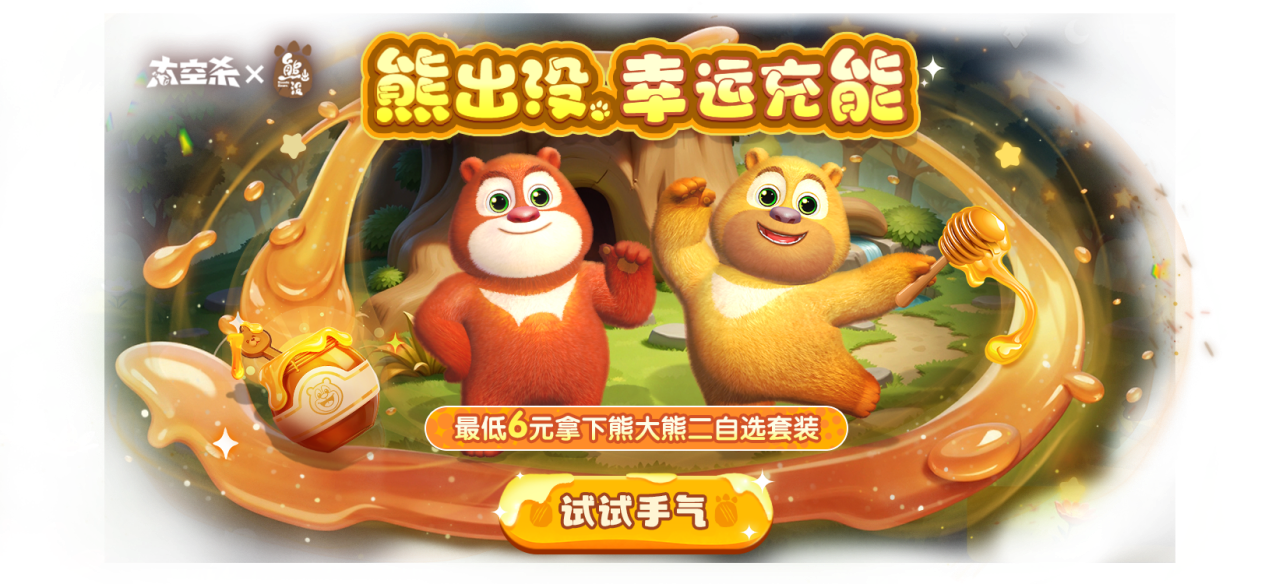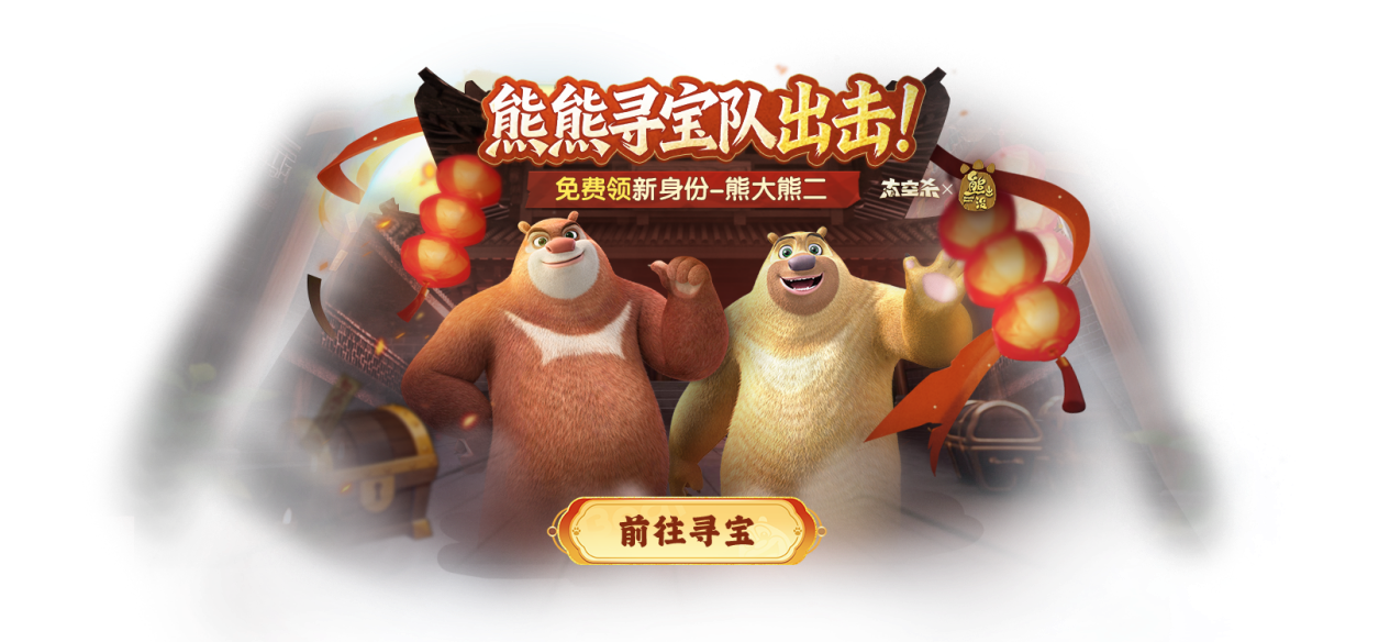熊出没主题夺宝限时开启,最低6元解锁熊大熊二自选套装,立刻前往游戏试试手气,获取你的联动专属套装!