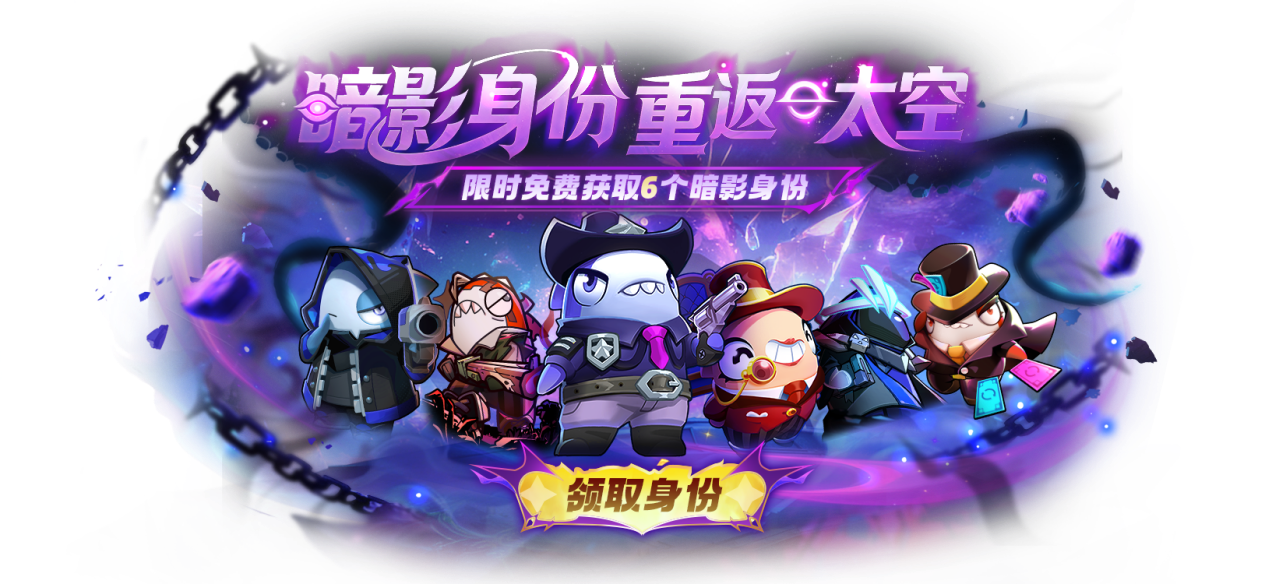 暗影身份现已重返太空,登录免费领自选暗影身份宝箱,限时免费获取6个暗影身份,即刻登录游戏领取你心仪的那个!