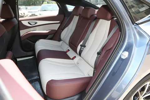空间方面,它的 “得房率” 很高:2843mm 轴距不算最长,但前排空间高度 1019mm(得益于全景天幕的曲面设计),180cm 的身高坐进去,头部还有一拳多的余量;后排膝部空间 110mm,坐三个成年人也不挤,孩子坐在安全座椅上,腿能自由活动。座椅更是 “加分项”—— 云感舒压座椅用的是头层 Nappa 真皮打孔,夏天不闷汗,冬天不冰背;前排支持 12 向电动调节 + 加热 + 通风 + 按摩,跑长途时开个按摩功能,腰不酸背不痛;后排座椅靠背角度合适,老人坐久了也不会觉得累。