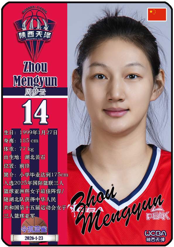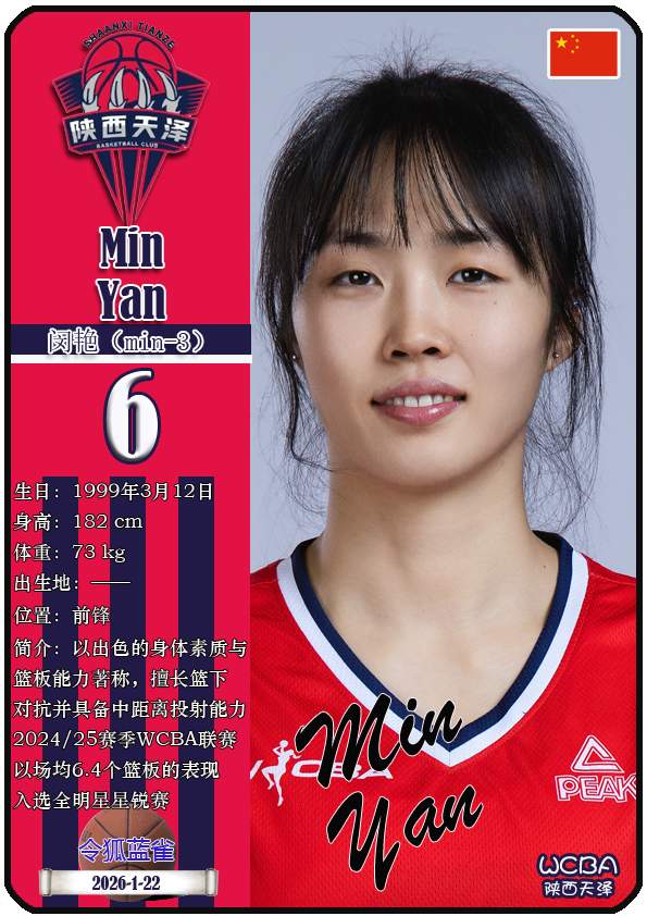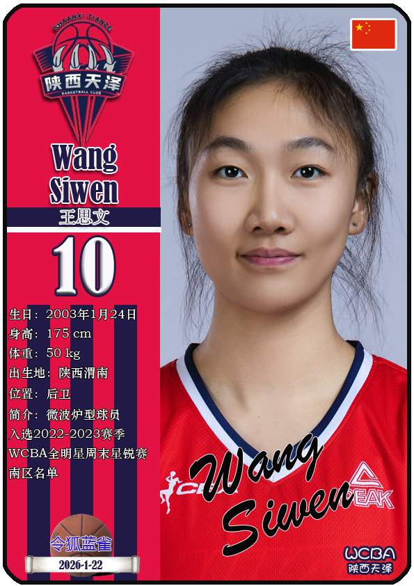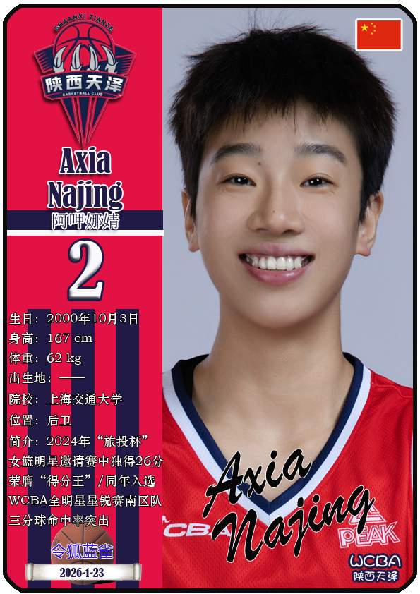 WCBA陕西天泽女篮成立于2014年11月3日,距今已有12年历史。截至2026年1月23日,球队主教练是纪妍妍,队内拥有球员付晶、王思文、刘晓薇等。本期盘点目前WCBA陕西天泽女篮的20名球员(按球衣号码排序):
