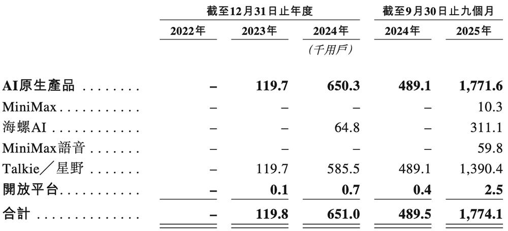 其AI原生产品用户数不断增长,累计用户数截至2025年9月30日增至2.12亿以上,平均MAU从2023年的314万增长超6倍至2024年的1911万,并进一步增至2025年1-9月的2764万。