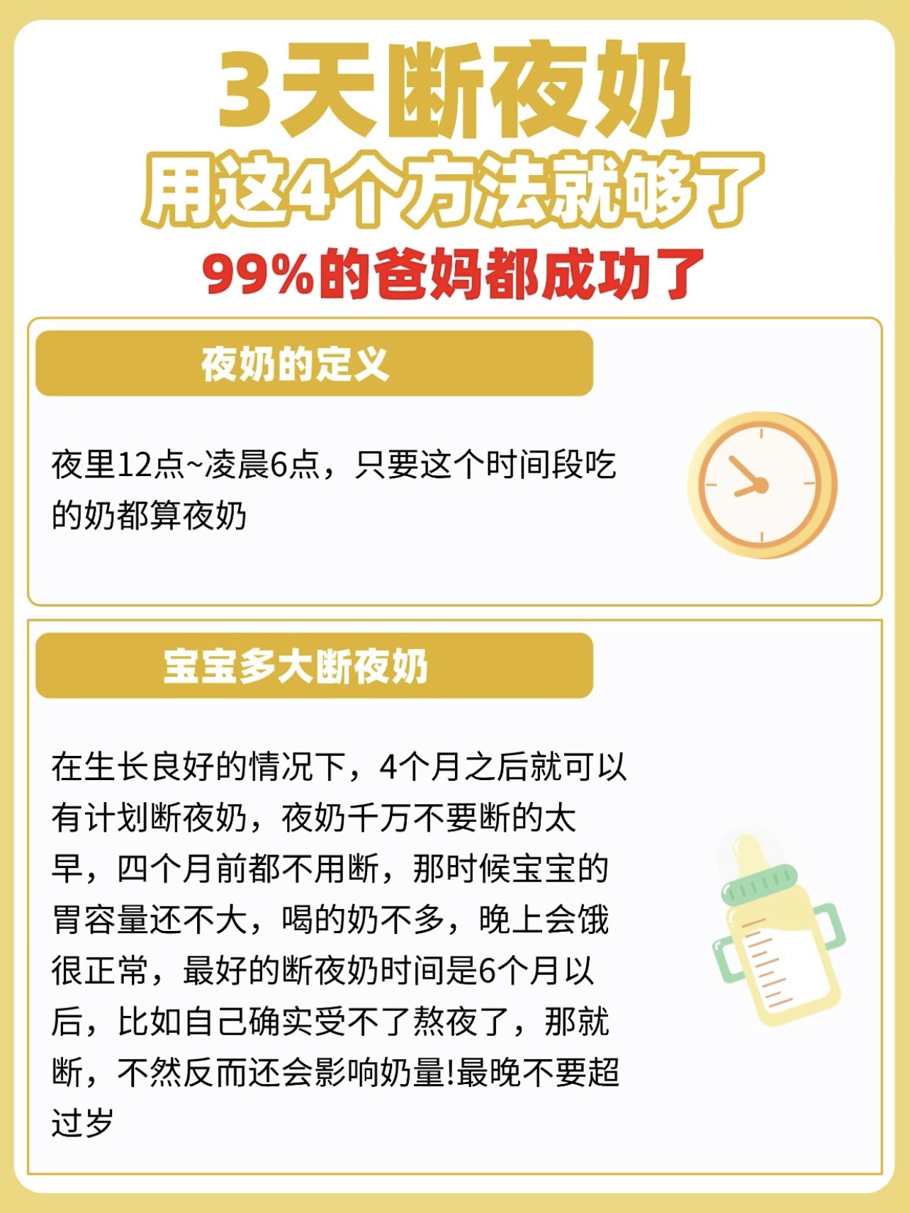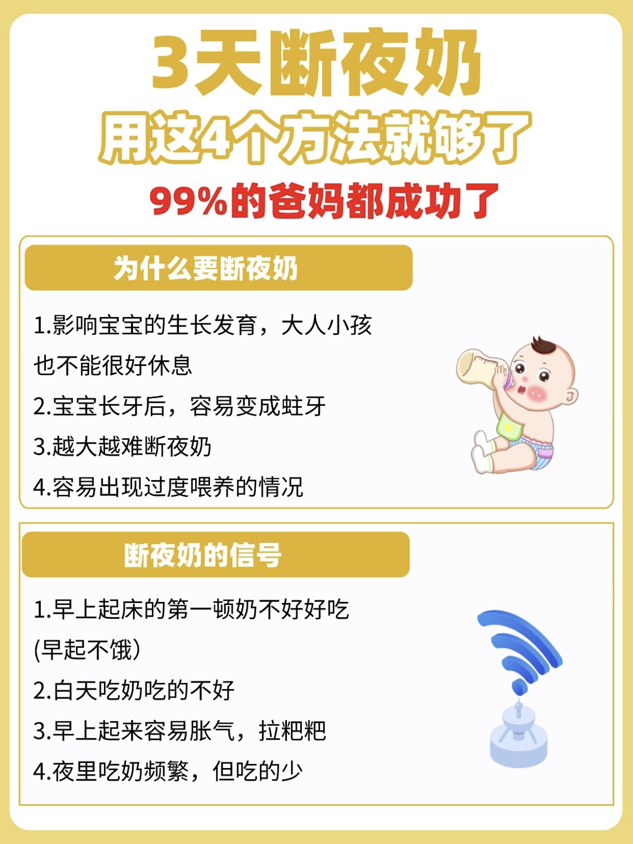在宝宝断夜奶后你会有惊喜收获,宝宝更健康:夜间深睡眠促进生长激素分泌,身高发育更快;牙齿更漂亮:减少夜间奶渍残留,降低龋齿风险;妈妈更自由。终于能睡整觉,白天精力充沛,亲子互动质量更高。断夜奶不是“剥夺宝宝的爱”,而是帮助他学会独立入睡的成长仪式。过程中可能会有哭闹,但请记住:你的坚定,是宝宝安全感最好的来源。当某天清晨,你和宝宝同时睁开眼,相视一笑时,会发现所有的坚持都值得。(附:断夜奶小贴士:若宝宝夜间哭闹超过30分钟,且伴随发热、呕吐等症状,需及时就医,排除疾病因素。)