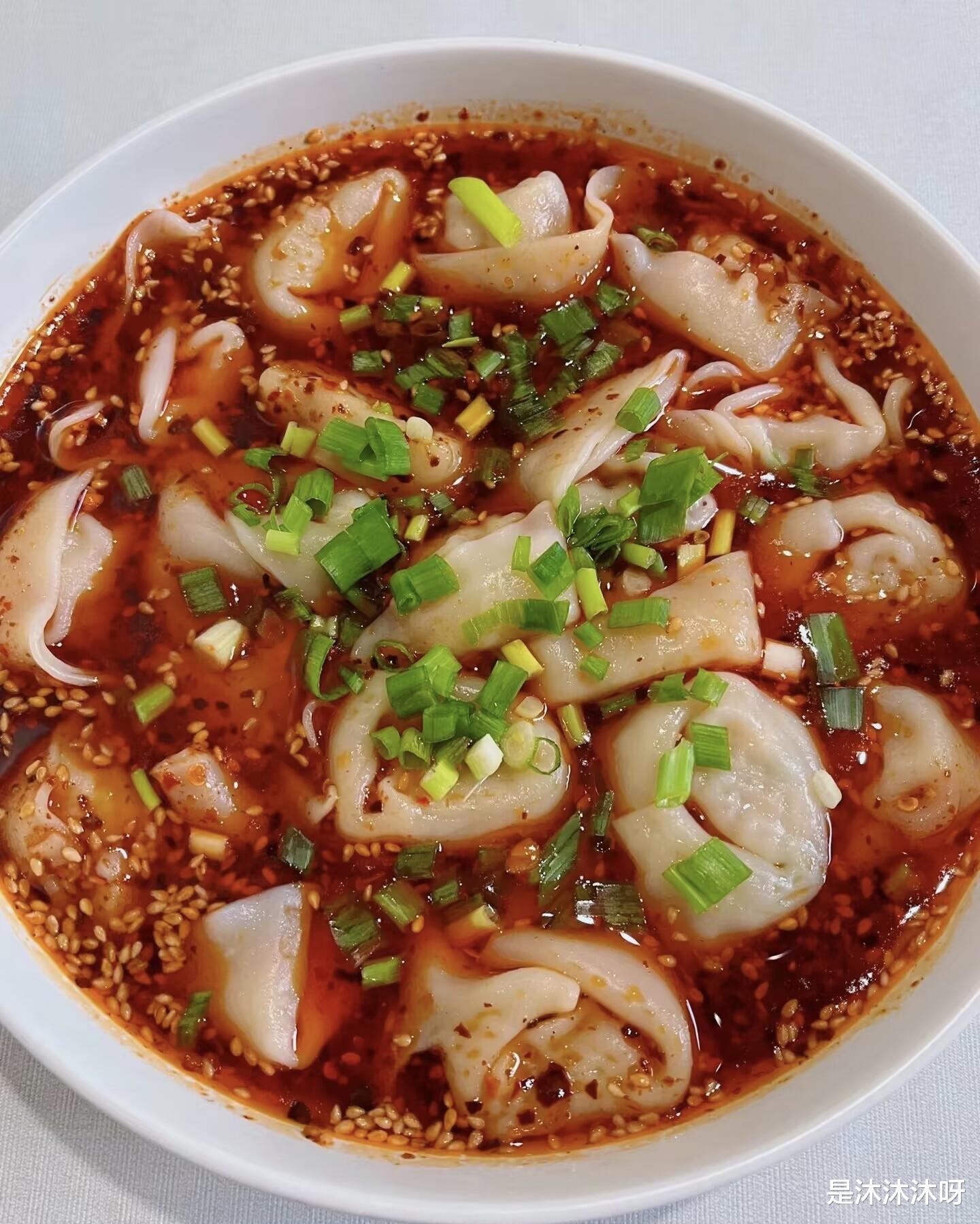 碗底提前铺好调料:一勺生抽、半勺香醋、一小撮盐和鸡精,再来两大勺刚炸好的红油。把煮好的抄手盛进去,浇两勺热汤,撒点葱花和花生碎。端起碗那一刻,红油的香气混着芝麻香直冲天灵盖,面皮透亮能看见里头粉嫩的肉馅,夹起一个蘸足了汤汁往嘴里送,先是红油的香辣在舌尖炸开,接着是面皮的滑溜,咬破后肉馅的鲜美混着汁水涌出来,层次丰富得想哭。