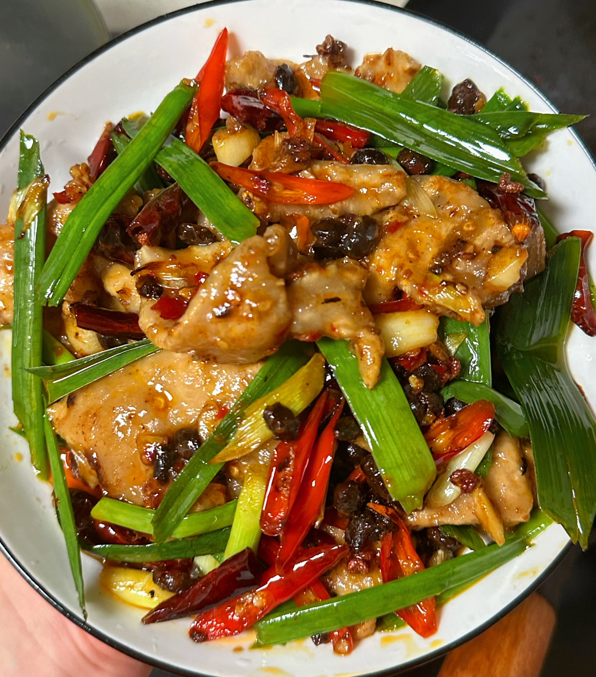 出锅装盘,你看那盘子里,肉片白嫩中透着酱色,辣椒红亮干香,蒜苗碧绿脆嫩,光看着就让人食欲大开。夹一片肉送进嘴里,先是感受到表面的微微焦香,咬下去却是嫩滑多汁的,一点不柴。辣椒的干香和蒜苗的清香交织在一起,咸鲜微辣,特别下饭。最妙的是肉片经过先煮后炒的处理,口感非常温柔,老人小孩都能嚼得动。