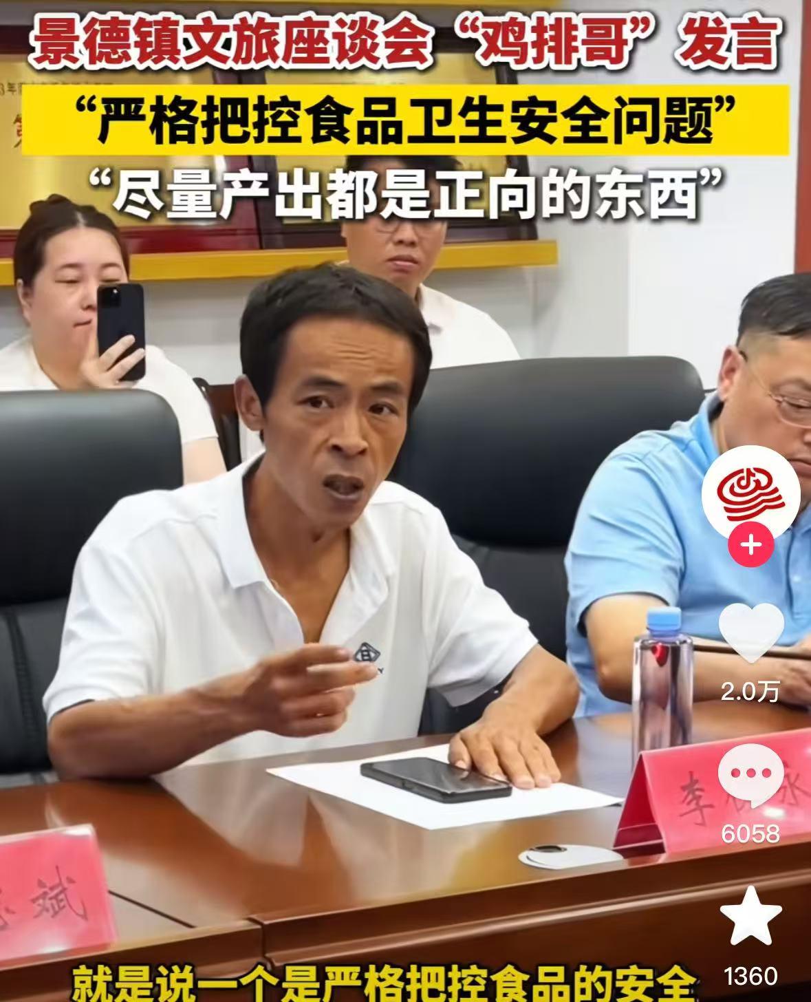 在文旅推广座谈会上,他小小的身躯,带着点搞笑的面容,一个平凡的小人物,却在闪闪发光,将6块钱的鸡排,讲出了6个亿的风范。