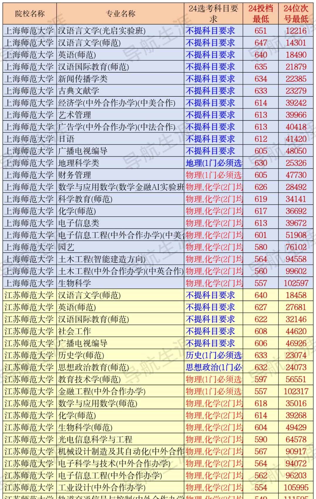 城市资源:地处上海徐汇区(市中心)及奉贤区,就业机会多元,尤其在教育、文化传媒领域需求旺盛。 就业方向:毕业生多进入上海中小学、国际学校或教育机构,部分进入金融、科技行业;本地就业认可度高。2. 江苏师范大学 区域辐射:位于苏北核心城市徐州,在江苏省内(尤其是苏北地区)师范就业市场占据主导地位,中小学教师岗位稳定。 就业特点:省内教育系统认可度高,毕业生多服务于基层教育,竞争压力相对较小。建议:若计划在上海或一线城市发展,选上海师范大学;若倾向于江苏省内(尤其是苏北)就业,江苏师范大学更合适。三、专业选择与学科适配1. 优势专业对比 上海师范大学:汉语言文学、小学教育、计算机科学与技术(依托上海产业资源,就业灵活)。 江苏师范大学:教育学、数学、统计学(学科评估表现稳定,适合深耕基础教育领域)。2. 新兴领域 上海师范大学在人工智能、数据科学等交叉学科投入较多,适合对前沿领域感兴趣的学生。 江苏师范大学的电子信息工程、电气工程等工科专业发展较快,兼顾师范与理工特色。建议:若明确从事文科或小学教育,优先上海师范大学;若倾向理科或希望学科多元化,江苏师范大学可提供更多选择。四、录取分数与性价比分析