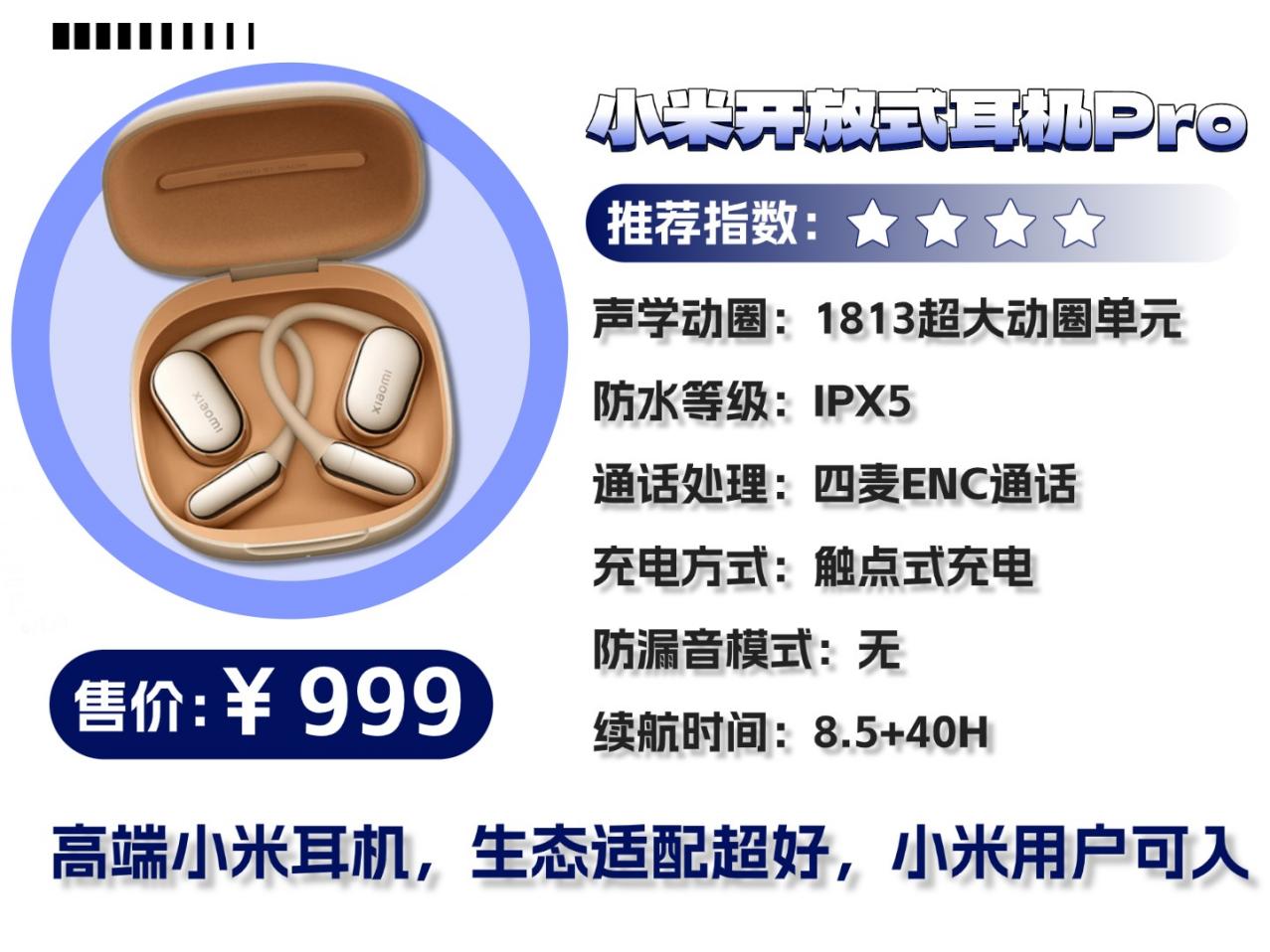 小米开放式耳机Pro售价:999元推荐程度:★★★★