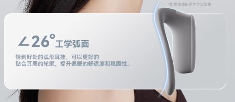 我第一次用这款耳机时,戴着感觉真的特别轻,单只仅 6.8 克,戴久了耳朵也不会有酸胀感。更贴心的是它的26°工学弧面耳挂,能刚好贴合耳周轮廓,稳定性还不错。