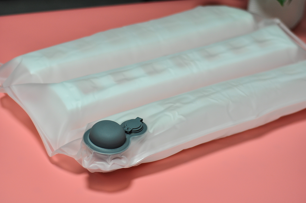 相较于传统枕头,添眠水气浮力枕的设计更具科技感。它采用水气双层复合结构:上层是褶形水枕支撑层,表面不平整的褶皱让水能够自由流动,从而实现零压力支撑;下层是分段气枕调高层,内部有镂空海绵支撑,加上充气阀门,能调节 5-10 厘米的高度(初始高度为 7 厘米,最高可达 15 厘米)。水气层外面包裹着婴儿奶嘴级的 TPU 环保材料,既能阻止细菌和螨虫滋生,又抗压耐水解,从材料到结构都十分结实耐用。