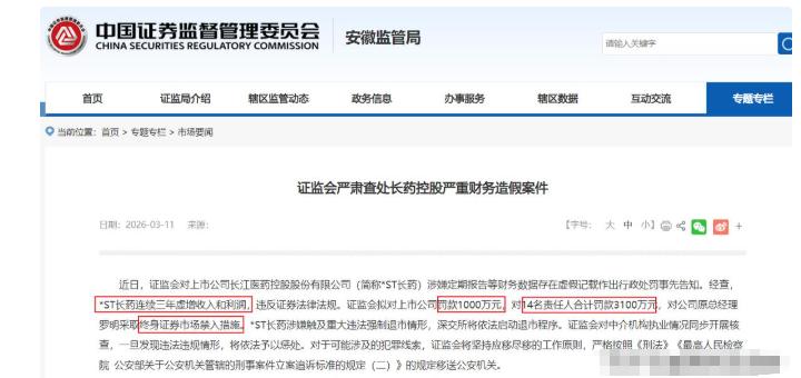 连续3年财务造假,长江医药上市药企要凉了?数万股民被割韭菜
