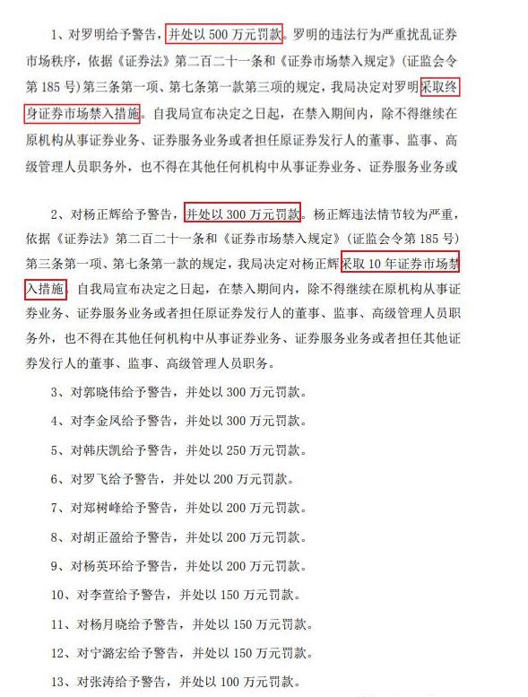 根据证监会处罚决定,罗明被罚款500万元,还被采取终身证券市场禁入措施,这辈子都不能再涉足证券行业。