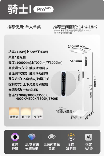 它的蓝光危害等级达到了RG0,这是无蓝光风险的最高标准,让孩子在享受光明的同时,也能远离蓝光的伤害。