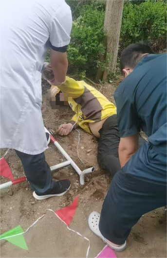 13时23分,泰安市中医二院急救站接到指令,13时24分救护车出车,13时28分到达现场,群众引导救护车到达具体地点,这时某团员工前来,其到达时间比救护车还要晚,而黄某平的车子上还有下一单没送到的奶茶,被卡在电动车上无法求救的黄某平在38分钟后终于被抬下来。