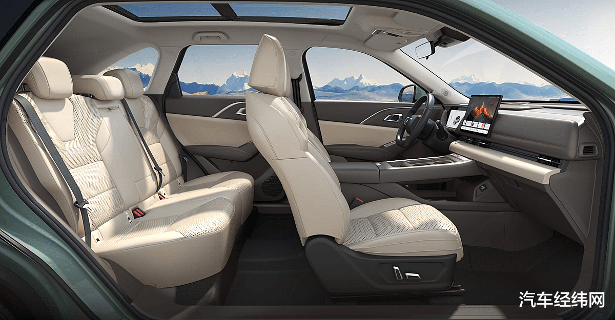 后排座椅提供 27°/32° 两挡靠背调节,配合近乎纯平的后排地板,全家五人同行时均能保持舒适坐姿,旗舰版标配全车座椅加热,冬季出行更暖心。