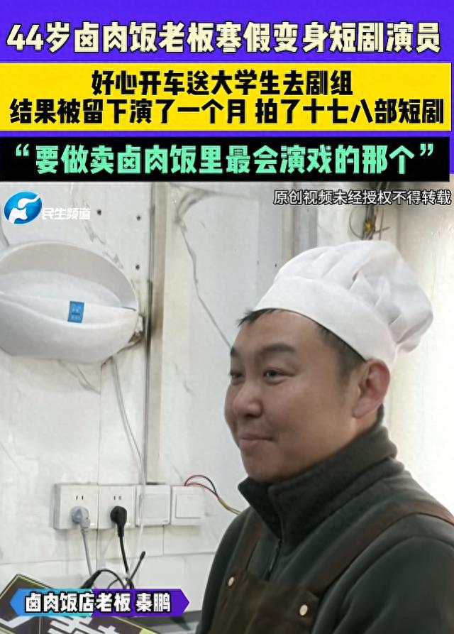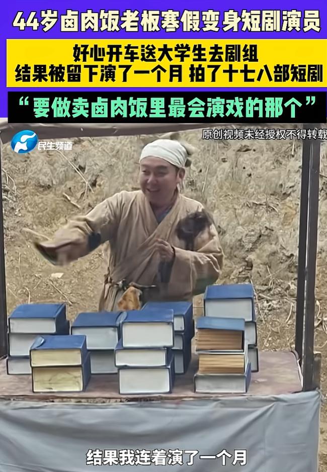 河南这位卤肉店老板就是如此,本来只是好心送学生去剧组演戏,没想到两个学生半天就演完了,自己反倒是走不了了。