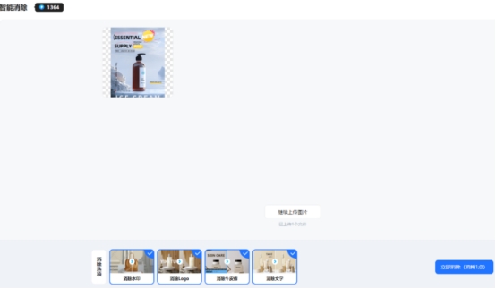 易可图的智能消除功能,支持一次性上传多张图片进行批量处理,这个功能可以对图片中的文字水印、标识、水印角标等杂物精准去除。