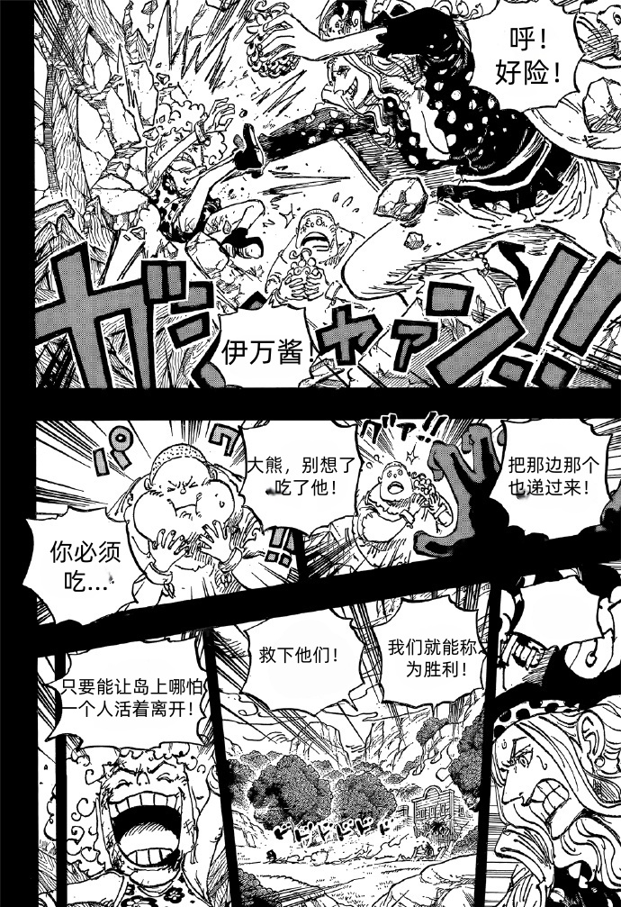 不等两人吃下恶魔果实,四皇大妈杀了进来,直接抢走了伊万的果实,然后大熊吞下了另外一个,两人成功的逃走!