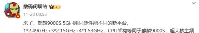 根据爆料来看,nova12系列主打的还是中端定位旗舰体验,所以在芯片上肯定还不会落后太多。不过和此前众多人预想的将采用麒麟9000S不同,nova12Pro和nova12Ultra采用的芯片虽然和麒麟9000S在架构上几乎一样,但最高主频只有2.49GHz,和Mate60系列上2.62GHz的麒麟9000S相比还是要低一点,所以这将是一颗低频版的麒麟9000S。
