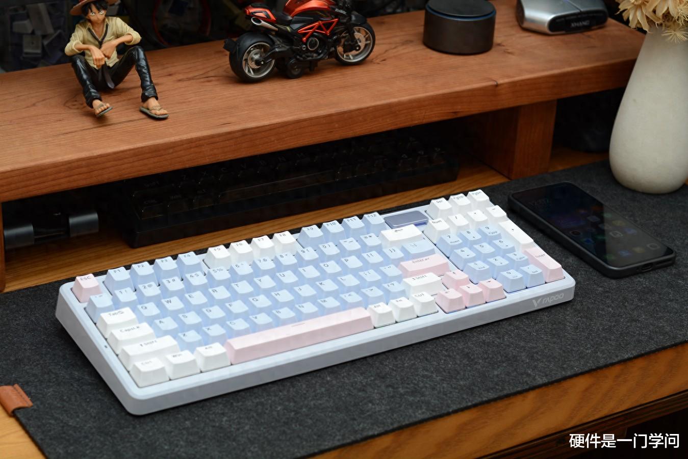 早在两年前,雷柏发布过一款104键V700DIY,有线单模,船壳结构,独立多媒体区,铝合金面板,悬浮式按键,自主快银轴。而这次发布的75和98配列则进行了脱胎换骨式的改变,Gasket结构,PCB单键开槽,7层消音填充,撞色键帽,凯华定制快银轴,RGB侧灯带,无线三模,等等,亮度颇多。V700DIY-75官方售价249元,V700DIY-98官方售价299元,618期间最低到手199元、239元。