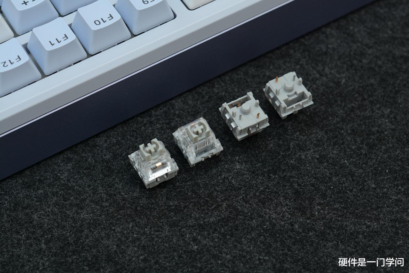 凯华定制快银轴,采用透明上盖,但导光柱比较浅,下灯位设计,如果搭配侧刻键帽,效果会更好一些。